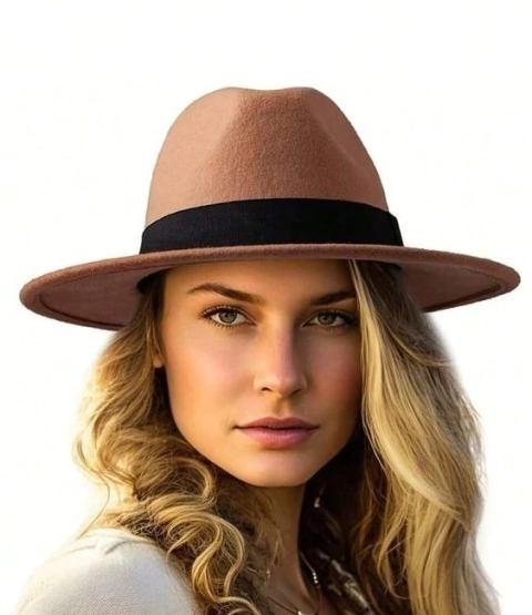 Lindo e luxuoso chapéu fedora caramelo marrom claro de feltro unissex. Usado pelos cantores, artistas e famosos no mundo inteiro. Com regulagem de tamanho e ótimo caimento na cabeça. Chapéu estruturado de aba grossa, tamanho médio. Moda diferenciada, moderna e casual. Estilo europeu. Sertanejo. Country. Gangster. Ensaios fotográficos.